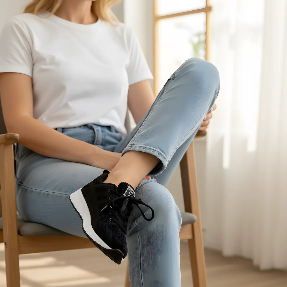 I purchase these shoes to balance me due to fracturing my left leg and forced to wearing a cast. It was suggested that purchase a shoe leveler, not my taste. I was nervous about the quality and support of these inexpensive tennis shoe, as well as the style. The height was perfect, fashionable, and more importantly, comfortable. I can't to wear both of them, together. The white sides have managed to stay clean. I plan to order another color.