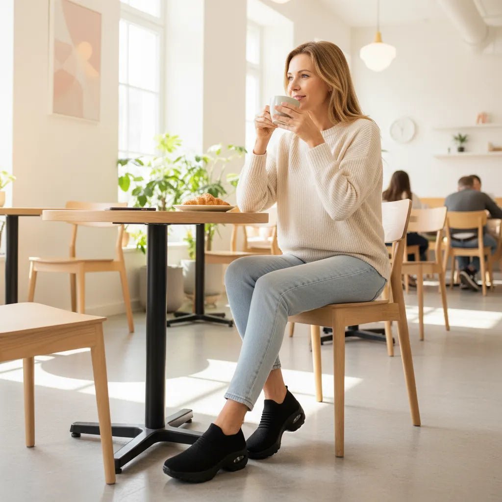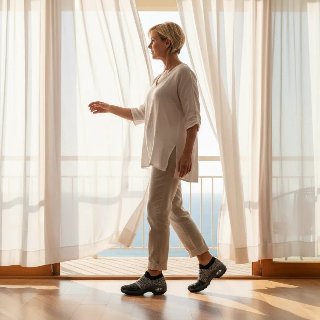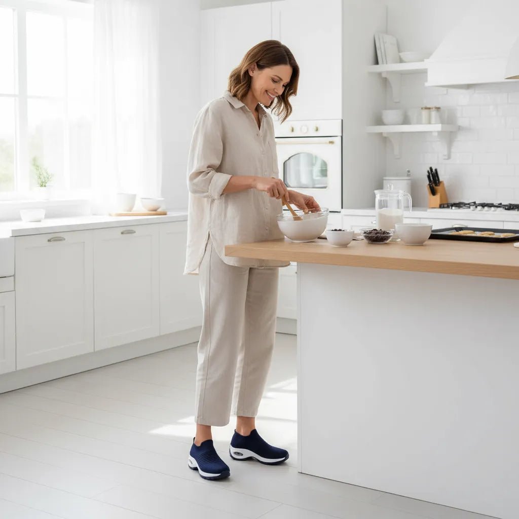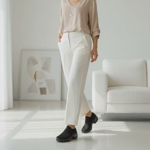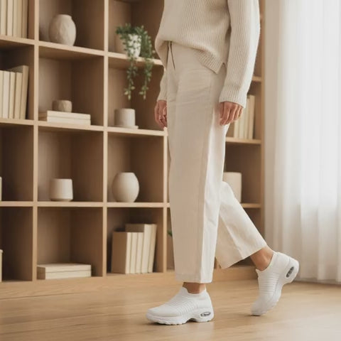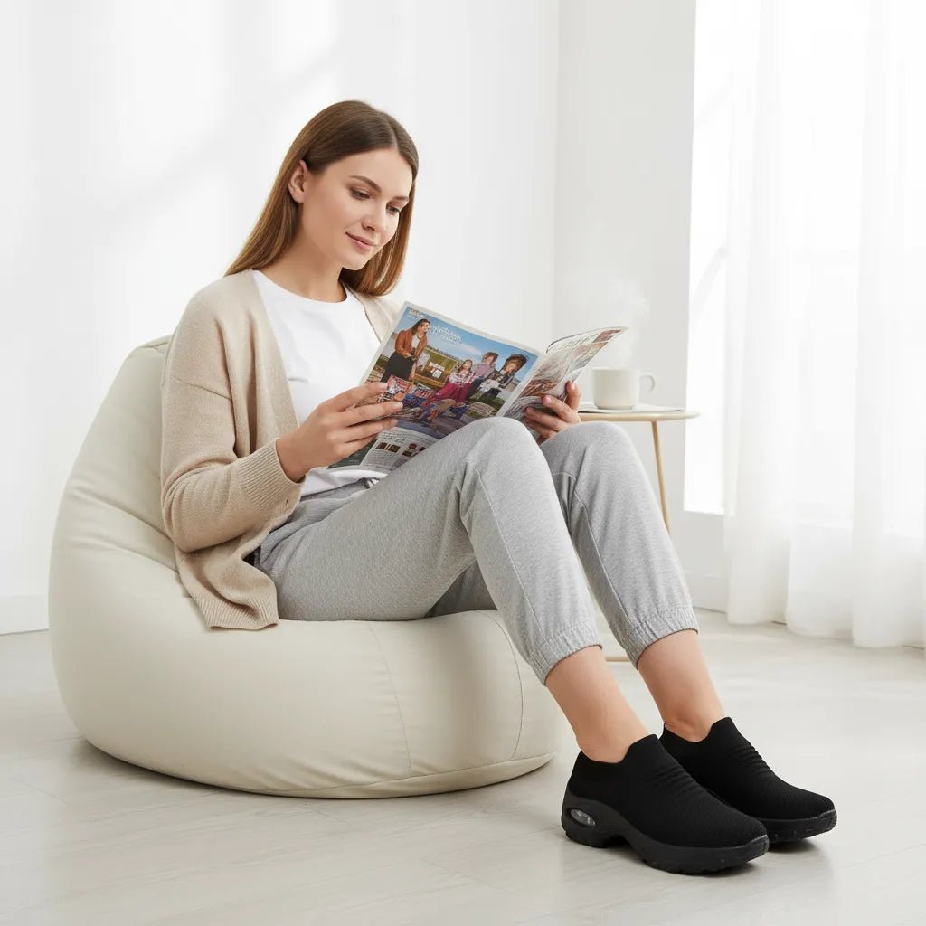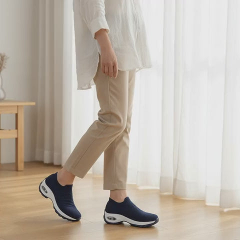 In the Summer, I was diagnosed with, plantar fasciitis. My doctor suggested buying a pair of good supportive footwear. I saw these advertised on Facebook & order a pair immediately. They are the most comfortable shoes EVER! The cushion insole feels like your walking on a cloud. The fit is perfect, not too tight & very comfortable. I'm able to walk pain free. Highly Recommend!