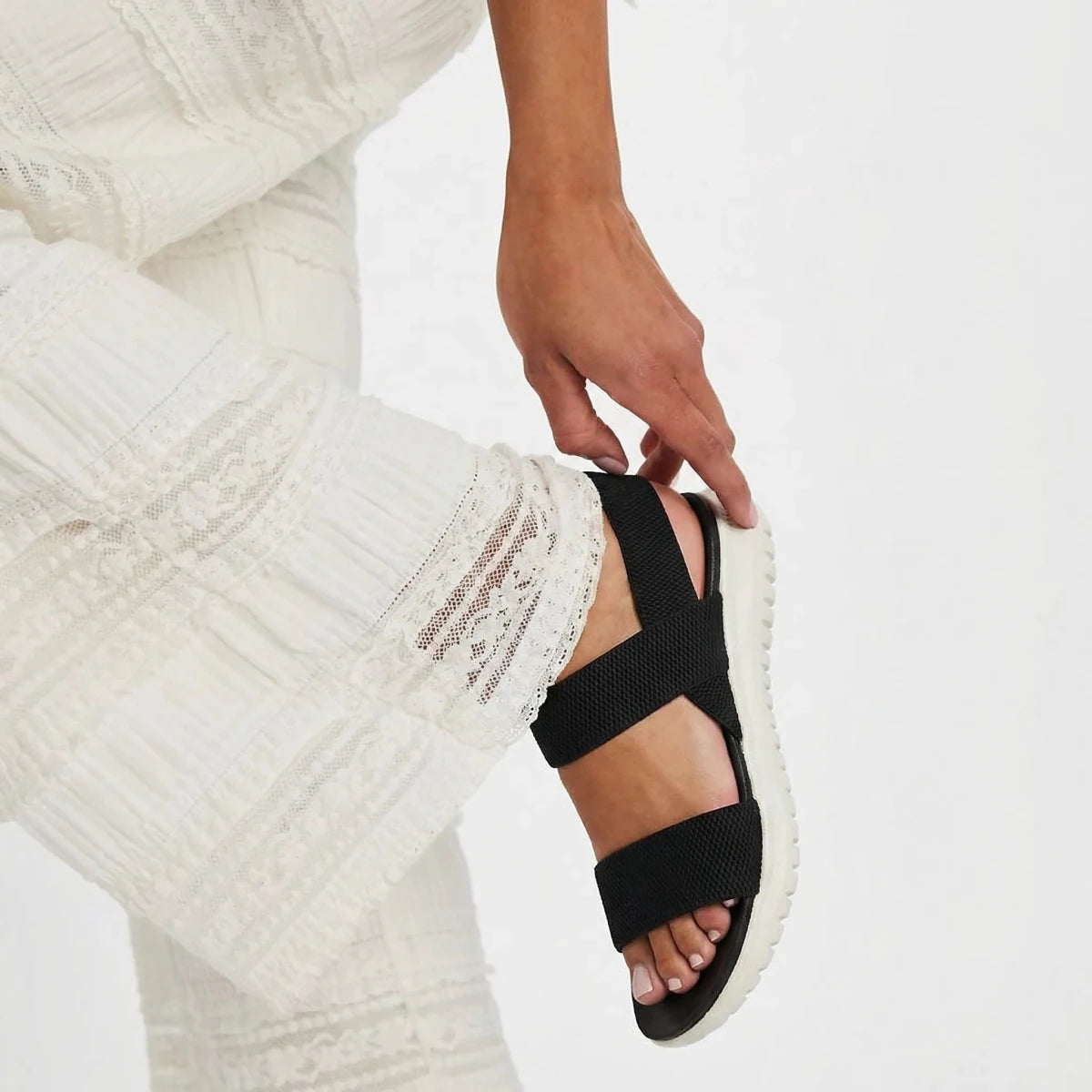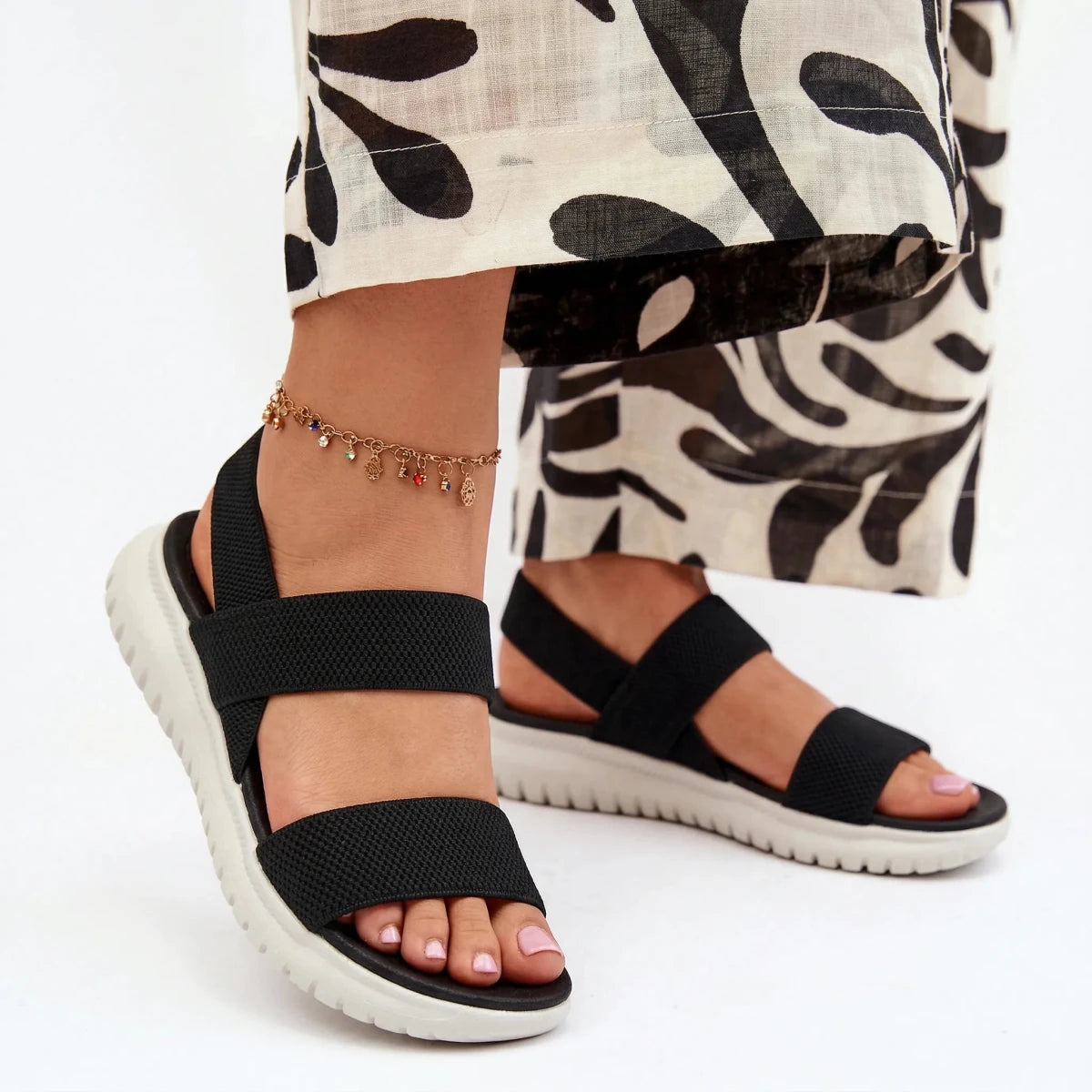 The crossover straps are what convinced me to try these, and they’re honestly my favorite part. They stretch just enough to feel secure without feeling tight. The sole bends naturally when I walk, so my steps feel smooth and relaxed. I’ve noticed less foot fatigue compared to my older sandals. Great choice for everyday wear.