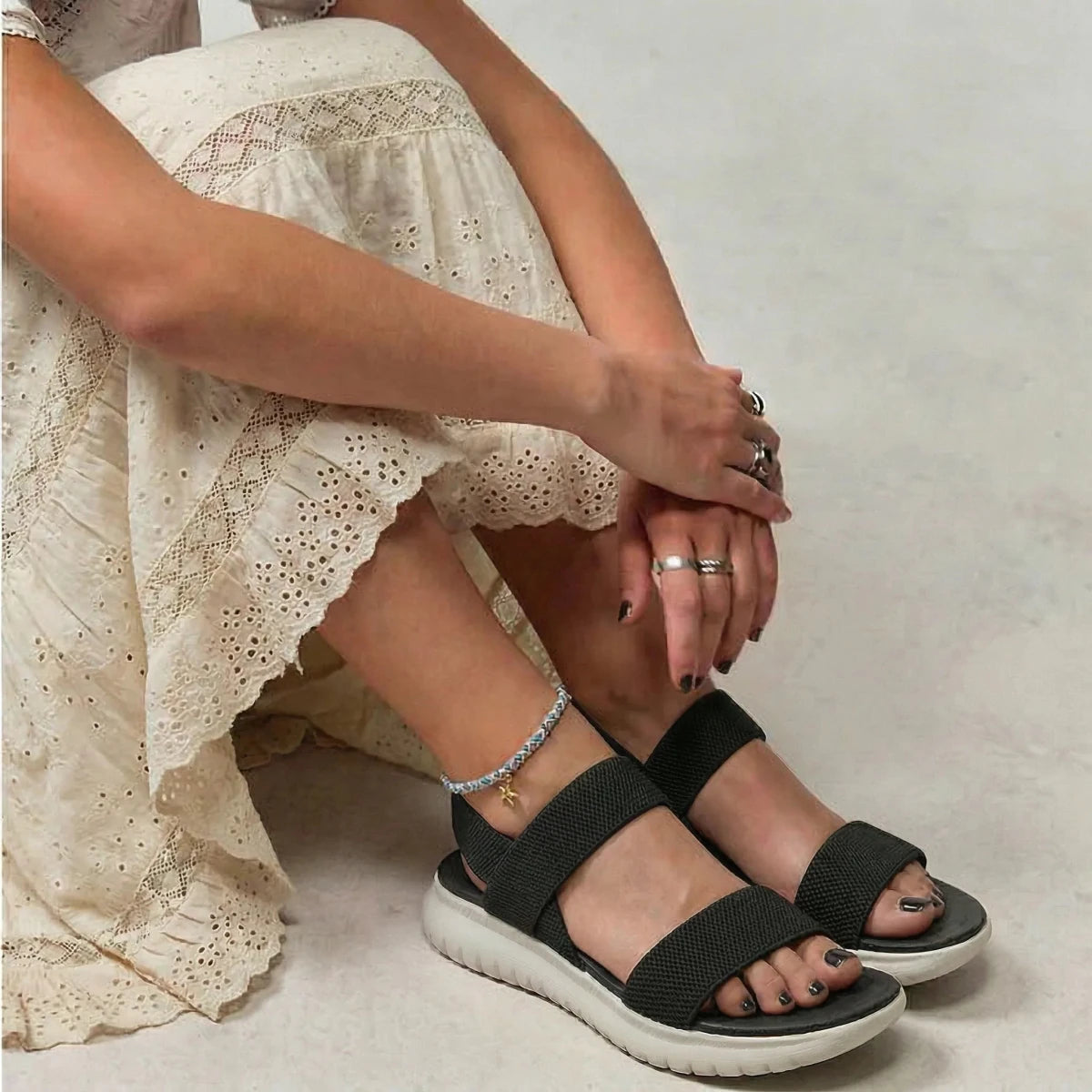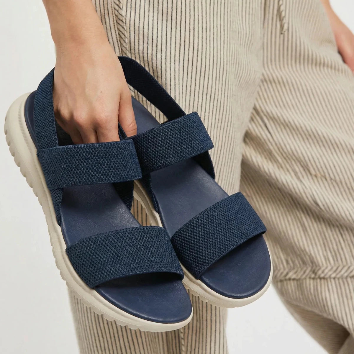 I’ve been wearing these almost daily and the comfort really stands out. The stretch-knit straps feel soft and flexible without squeezing my feet. I especially like how lightweight they are, which makes long walks much easier. The footbed gives just enough support to keep my feet from getting tired. They’re simple but incredibly comfortable.