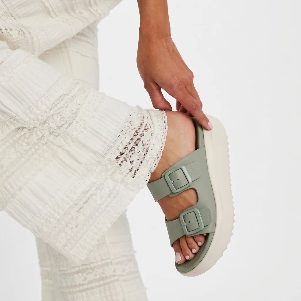 I wasn’t sure what to expect, but these honestly feel amazing after a long day. The cushioned footbed is soft without being overly squishy, and my feet feel supported the entire time. I love that I can adjust the buckle straps for the perfect fit. The platform is lightweight and absorbs impact really well. They’ve quickly become my everyday favorite.